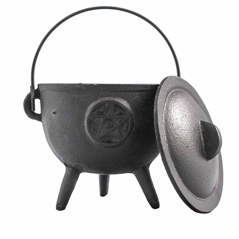 Crafted from durable cast iron, these cauldrons are not only visually striking but also built to withstand the test of time. Each design features intricate pentagon or triple moon patterns, adding a mystical touch to the rituals.